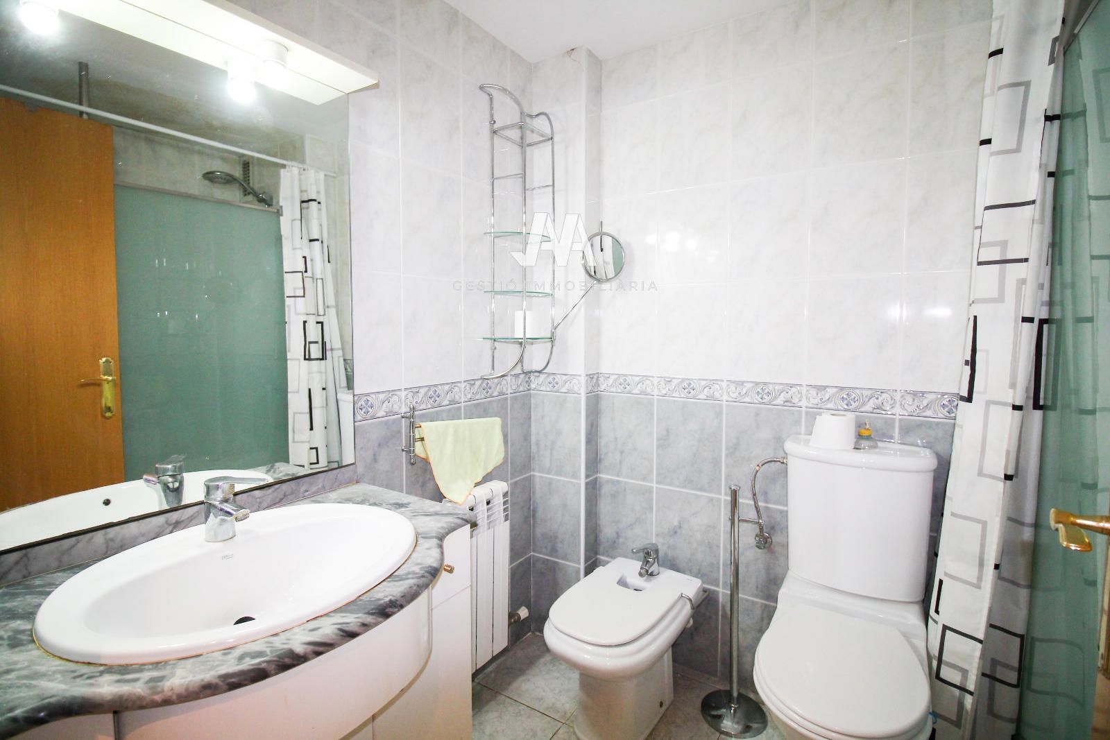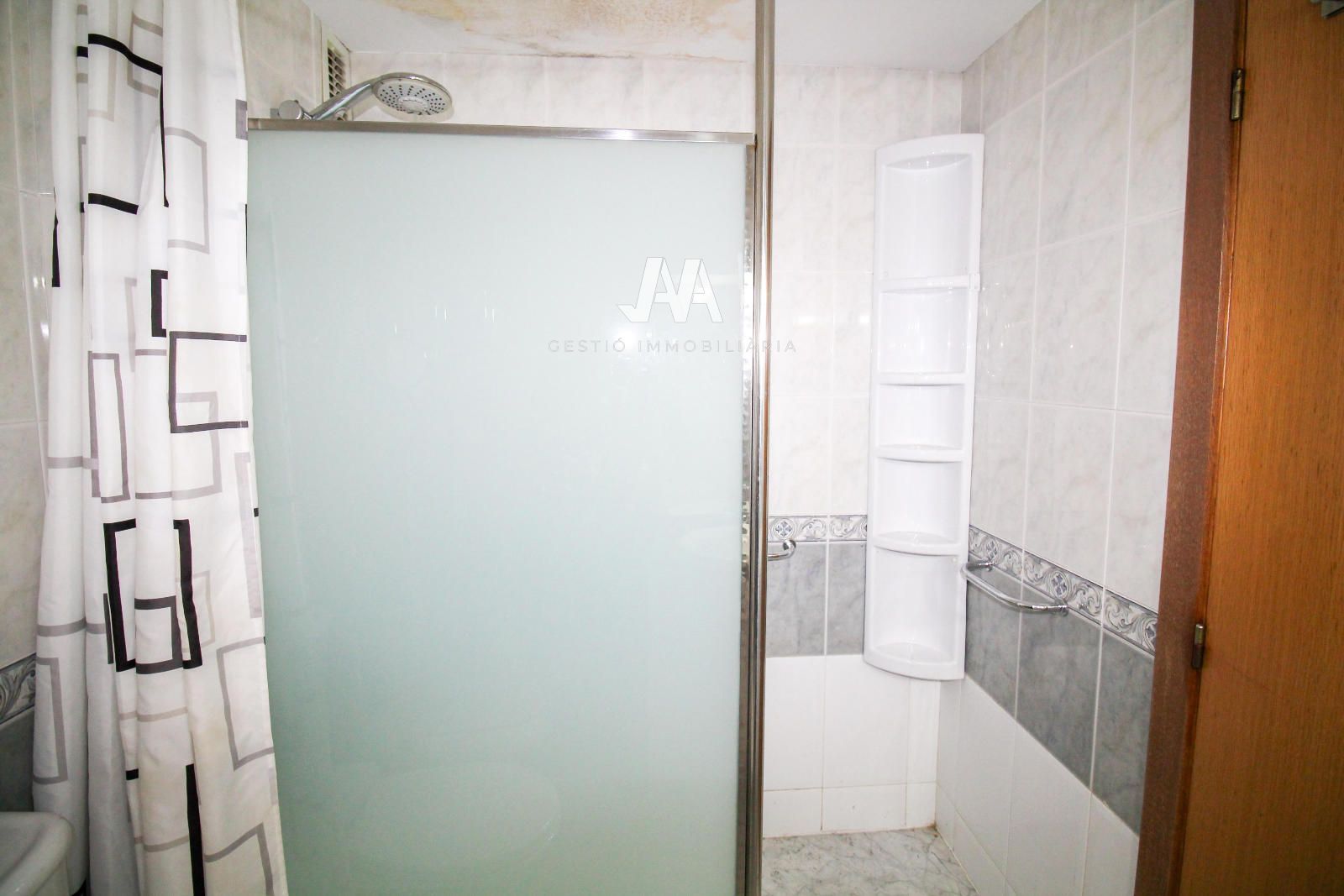 • Un cuarto de baño completo con plato de ducha.